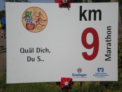 Mein Fazit: Der Trollinger schmeckt als Wein und als Marathon am besten, wenn er nicht zu warm serviert wird. Es gibt sicher hochklassigere Weine und Marathonveranstaltungen. Aber sowohl der Wein als auch der Marathon werden in dieser Gegend von den Leuten mit Hingabe gepflegt, was beide zu etwas Besonderem machen. Ich komme gerne wieder an den Trollinger und gehe nachher mit einem Trollinger nachhause. Wenn das Verpflegungskonzept das gleiche bleibt, werde ich aber das nächste Mal Eigenverpflegung mitnehmen.