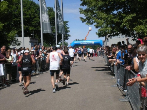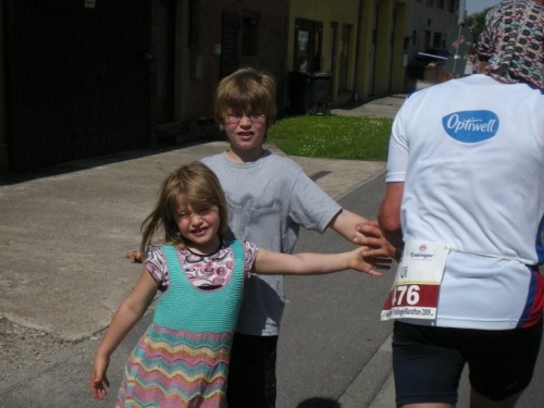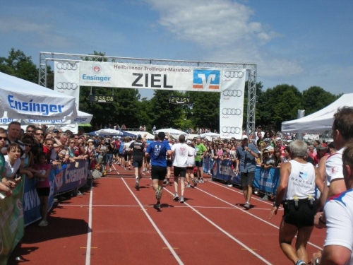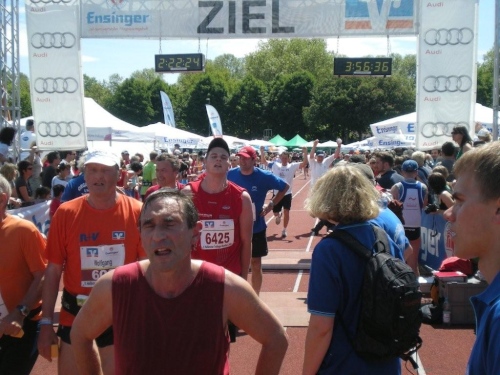 Ein Blick auf die Uhr zeigt mir, dass ich seit dreieinhalb Stunden unterwegs bin. Obwohl ich langsam geworden bin, liegt eine Zeit knapp unter vier Stunden noch drin. Zum Glück gibt es diese blöden „magischen Zeiten“. Mit diesem Ansporn packe ich den Rest. Die engagierten Zuschauer nehme ich zwar wahr, getrieben bin aber nur noch vom Wunsch, möglichst bald im Ziel anzukommen.