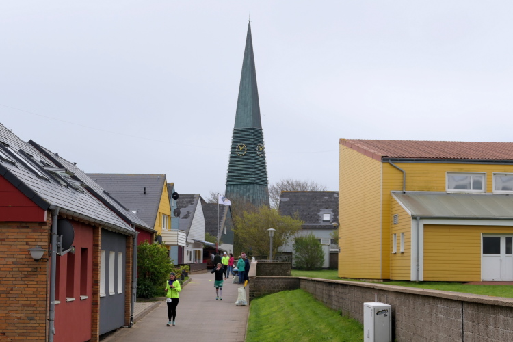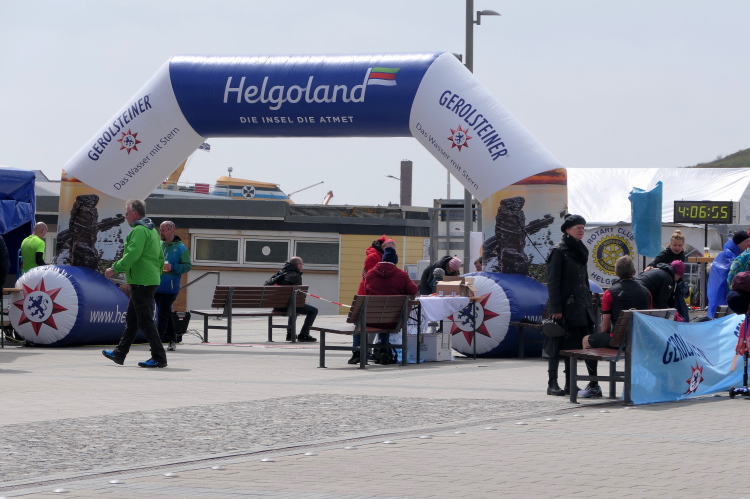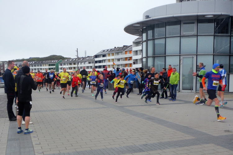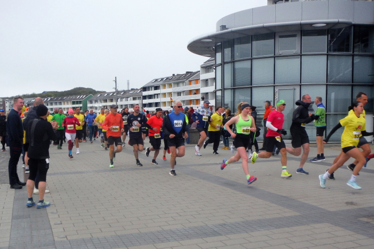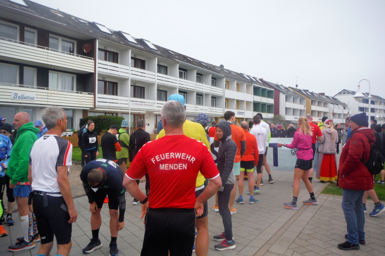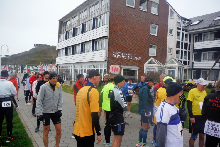 Mit der Fähre erreichen wir mittags das Eiland in der deutschen Bucht. Nach Bezug unseres Zimmers haben wir noch Zeit für eine erste in Augenscheinnahme der Insel. Die Startnummernausgabe ist von 15 bis 17 Uhr in der Nordseehalle. Auch wenn sich bereits am Eingang eine lange Schlange gebildet hat, bleibt es ruhig. Jeder hat Zeit und nach kurzem Warten seine Startunterlagen inklusive Shirt in den Händen. Danach geht es an die Streckenbesichtigung. Da die Insel nicht besonders groß ist, werden 8 Runde á 5,25 Kilometer gelaufen zzgl. 200 Meter Vorlauf, um die Marathonstrecke zu erreichen.