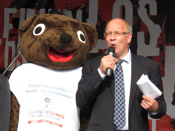 Den Startschuss gibt Rostocks OB Roland Methling, der normalerweise auch als Läufer aktiv dabei ist, wegen mangelnder Vorbereitung aber diesmal verzichtet. Hat der Mann eine Vorahnung?