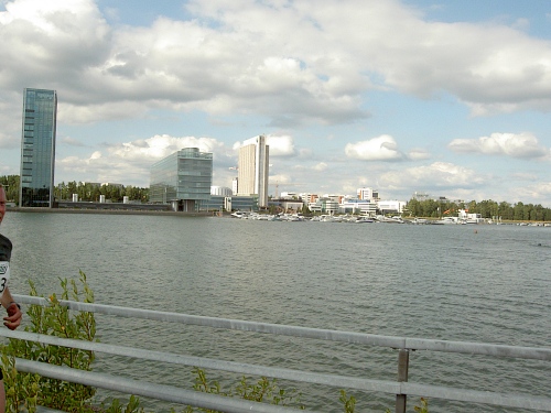 Am Rathaus biegen wir auf die Esplanadi ein, den Flanierboulevard der Stadt. Hier sitzt man gerne bei einem Getränk und beobachtet das Treiben und nun kommt auch noch der Marathon vorbei. Die Zuschauerdichte ist hier am größten, da der Start nur zwei Kilometer entfernt liegt. Nach einer Schleife geht es nun den Hinweg in verkürzter Form zurück. Dabei sehe ich auch wieder zwei junge Damen, die mir nochmals mit Sektgläsern zuprosten.