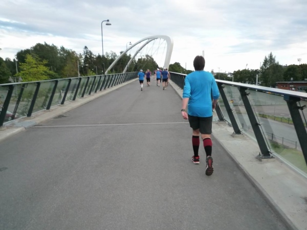 Die 30 km-Marke befindet sich am östlichen Beginn der Lauttasaari-Brücke, auf der wir jetzt zurücklaufen. Die zahlreichen „hyvä, hyvä“- Anfeuerungszurufe sind längst verstummt, denn Zuschauer sind schon abgezogen.