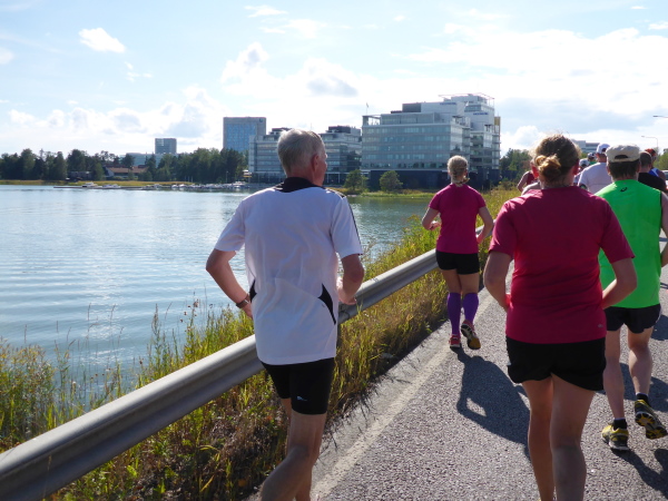 Auf der Schäreninsel Kuusisaari (km 10) leben die ganz reichen Finnen. Sämtliche Botschaften sind hier angesiedelt. Von der nächsten Brücke ist die Insel Keilaniemi (km 12) sichtbar. Unverkennbar, dass hier der business district von Helsinki ist. Im Norden schliesst das Univiertel an.
