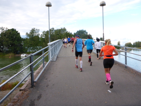 Nun laufen wir die Runde im Uhrzeigersinn zurück. Wie in Stockholm ist die zweite Runde leicht abgeändert und quert die Seurasaarenselkä-Bay über kleine Schäreninseln, die über Brücken verbunden sind.