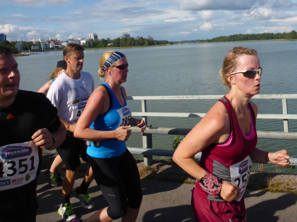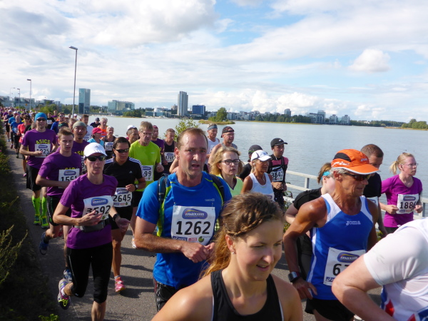 Der Marathon beginnt mit einer Runde um den Eläinterha Djugarden, dem Zoogarten. Der Zoo wurde nie realisiert, nur ein traumhafter Park. Bei km 3 am Töölönlahti -See, ist Helsinkis berühmte Joggingstrecke. Den Park muss man sich unbedingt sonntags anschauen, wenn die Finnen ihre weissen Picknickmöbel aufstellen. An der Südseite der Bucht die Finnlandia Halle, Nationaloper und Nationalmuseum.