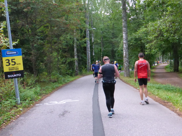 Die Pohjoisesplanadi ist die Haupteinkaufstrasse und km 25 leider der Wendepunkt. Gerne wäre ich noch vorbei am Dom, oder der Russischen Kirche und entlang der alten Speicherhäuser gelaufen. Ein Trost: beim Savoy, rechts rein. Beim „König Helsinki“ sollte man seine Abende verbringen. Beim Helsinkimarathon ist der weibliche Anteil 30%, dort im Hinterhof sind es 70%. Einige Mädels haben einen Gänseblümchenkranz im langen, blonden Haar. Das Auge trinkt mit! Wie sagte Sampsa zu mir: „ If you d´ont find one here, you will never find one !“ Gut, aber ich bin zum Laufen hier!