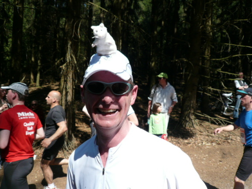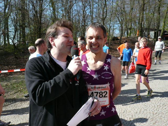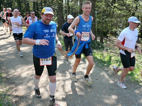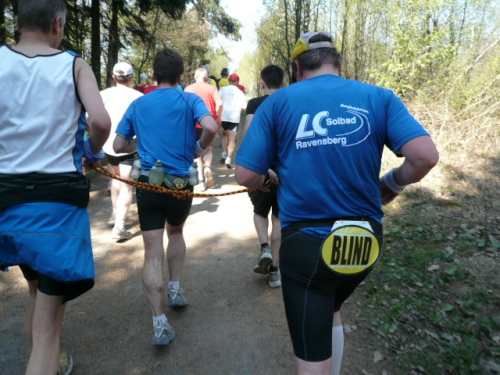 Plötzlich sehe ich ein mir von „meinem“ blinden Kenianer, Henry Wanyoike, vertrautes Bild: Einen von einem sehenden Läufer geführter blinder Läufer. Ich pirsche mich heran, mache ein Bild von hinten, frage, ob von vorne eines erlaubt ist, höre ein „Selbstverständlich!“ und „Grüß den Klaus schön von mir!“. Das ist doch tatsächlich der Didi, den ich schon in Arolsen beim Adventmarathon abgelichtet habe. So klein ist die Welt!