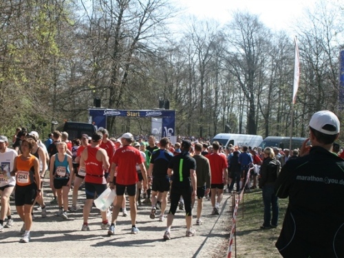 Startnummernausgabe im Gymnasium am Waldhof, Bielefeld. Transport zum Start in Bussen. Hinter dem Ziel findet man Duschzelte. Eine weitere Duschmöglichkeit besteht in der Sporthalle des Gymnasiums am Waldhof.