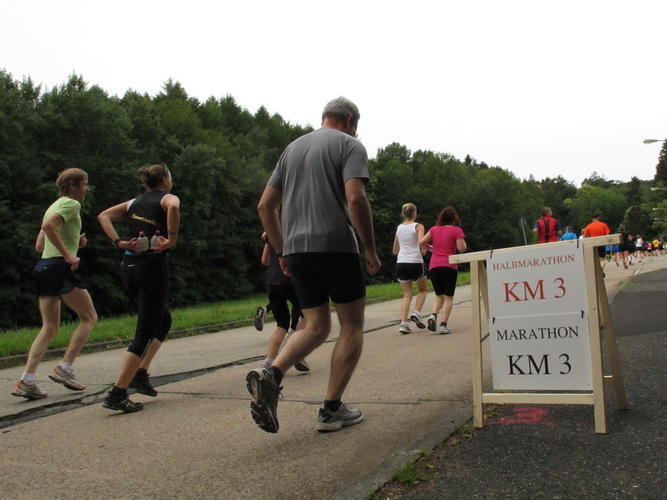 Als Favoriten stehen Marco Diehl, Tobias Hegmann und Rene Strosny in der ersten Startreihe. Für Marco Diehl ist es ein besonderes Rennen. Es ist sein 100. Marathon. Na und, werden einige fleißige Sammler sagen. Es gibt da einen feinen Unterschied. Der Butzbacher Banker versteht sich zwar auch als Genussläufer und läuft bevorzugt dort, wo es schön ist, aber er läuft schnell. 74 seiner Läufe beendete er in einer Zeit unter 2:40, seine Bestzeit liegt bei 2:28. Seinen ersten Marathon lief er 2003 auf dem Weiltalweg gleich unter 3 Stunden. Kann gut sein, dass der 42(!)jährige Marco Diehl heute einen Weltrekord aufstellt. Zumindest in Europa ist kein Läufer bekannt, der auf eine solche Leistungsstatistik verweisen kann.