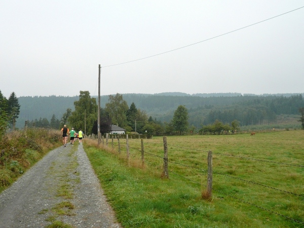 In leichten Wellen geht es zum Wendepunkt in der Nähe der Nuttlarer Höhe. Hier werden wir freundlich gebeten, einen Kreis zu laufen und ab geht es zurück.