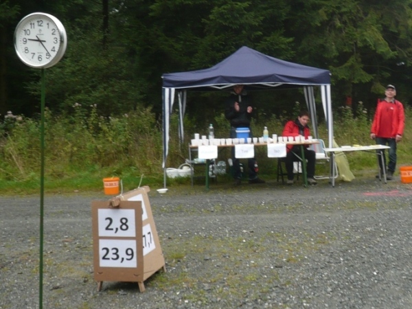 Bei km 2,8 haben wir die erste Gemeinheit geschafft. Es wird aber bei dieser einen Gemeinheit nicht bleiben, denn es gibt pro Runde drei Gemeinheiten (Gemeinheitskopf 551,9 ü. NN). Hier gibt es auch die erste Versorgungsstelle, an der wir ganz herzlich begrüßt werden.