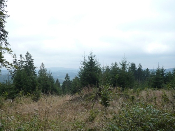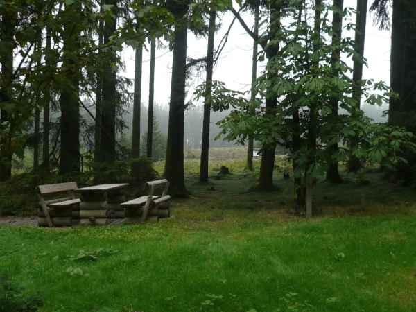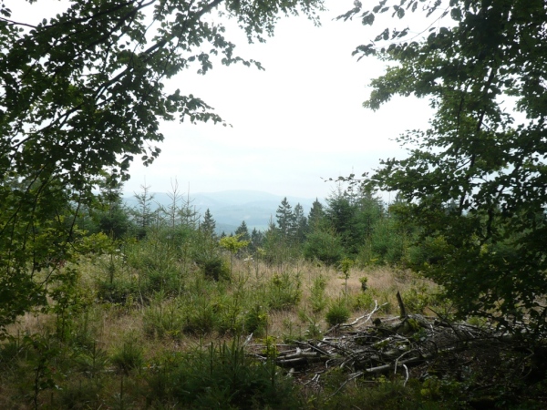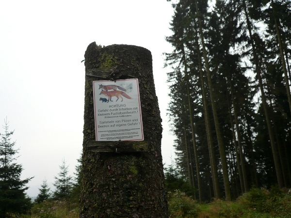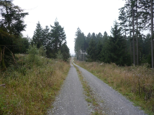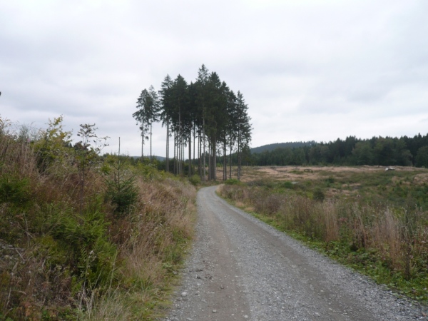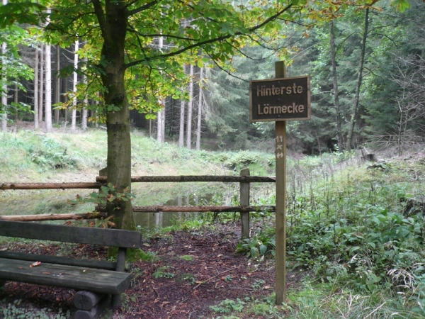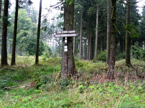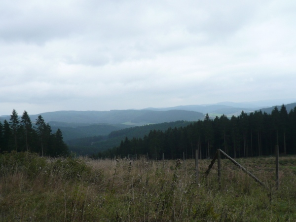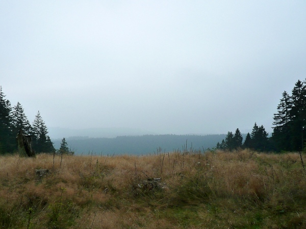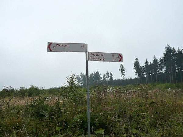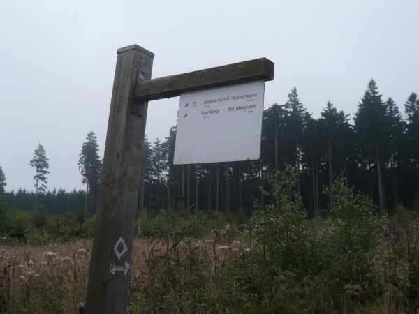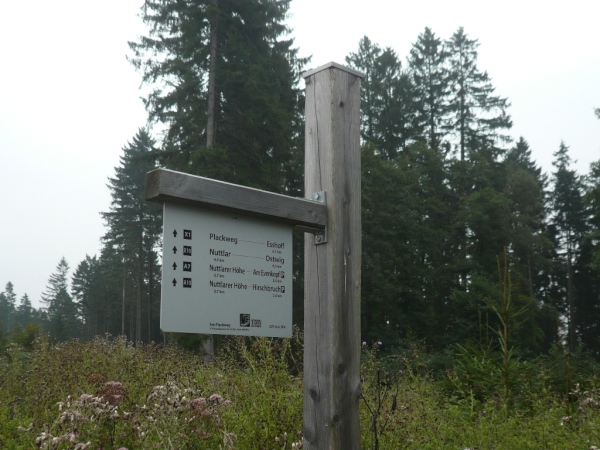 Die in der Nähe liegende Nuttlarer Höhe liegt auf 542m über NN mit einem Grenzstein aus dem Jahr 1801. Von hier gibt es einen der wenigen Ausblicke gen Süden ins Tal der Eimecke, wäre da nicht der Nebel.