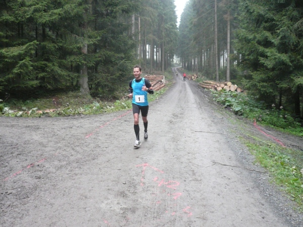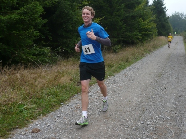 Jetzt das Gleiche nochmal. Ich habe gerade 2,5km der zweiten Runde gelaufen, da kommt mir schon die Nr. 1 André Kraus entgegen.