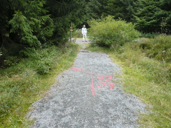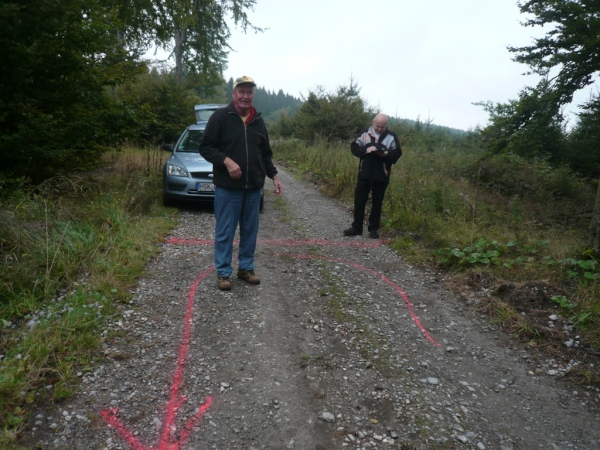 Auf einem geschotterten Weg laufen wir zum Lömecke Turm. Hier und an allen anderen Posten werden unsere Startnummern notiert, es soll keiner im Wald verloren gehen.