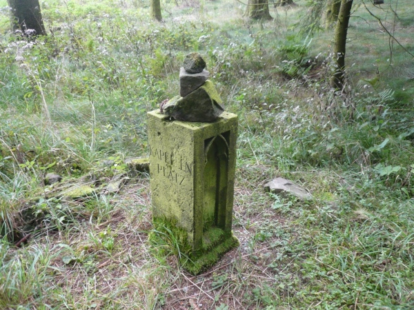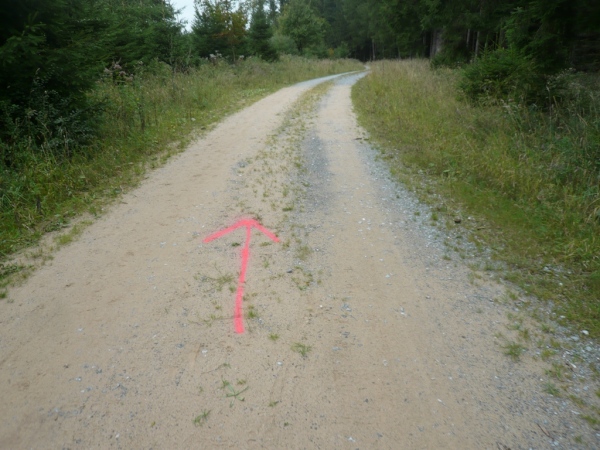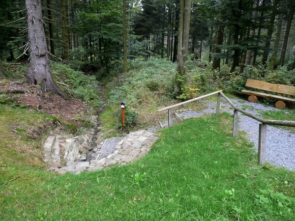 Es geht zurück zum Gemeinheitskopf (551,9m NN). Wir sind hier auf einem Teil des Plackweges, der auf der Plackweghöhe, einem Bergkamm oberhalb des Ruhrtales, verläuft. Früher war dies für die Händler mit ihren schwerfälligen Ochsenkarren sowie auch für die Soldaten oder Pilger die einzige Verbindung, die das ganze Jahr passierbar war. Die tiefer gelegenen Wege waren durch die vielen Quellen sehr sumpfig. Aber auch die Plackwege waren nicht ganz sumpffrei und so wurden sie durch abgestochenen Placken (durchwurzelte Soden von Heideland oder Grasflächen) befestigt. Überall im südlichen Arnsberger Wald gibt es kleine Bäche und Moore.