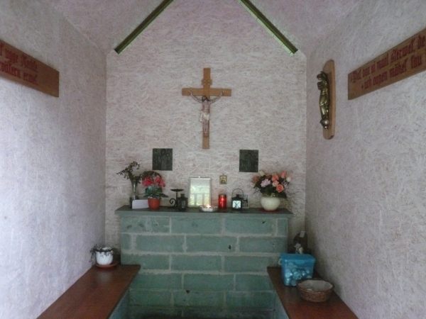 Wir rasten nicht, denn es geht weiter. Nach einem längeren Bergabstück weist uns ein Posten auf einen schmalen Pfad. Es geht aufwärts zum Kapellenplatz. Mitten im Wald steht eine kleine Kapelle, an dessen Stelle früher zu Jagdbeginn gebetet wurde.