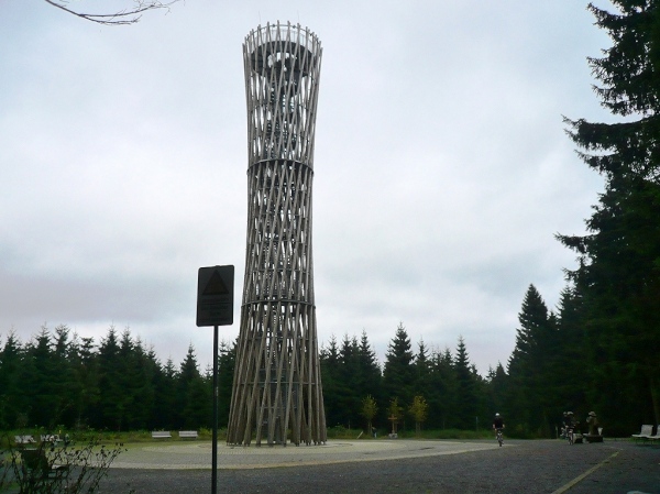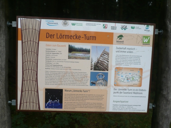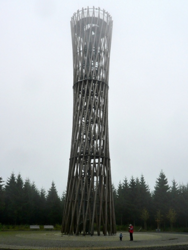 Der dunkle Fichtenwald liegt noch teilweise Nebel, der 35m hohe Lömecke-Turm ist fast gänzlich verschleiert. Das neue Wahrzeichen im Naturpark Arnsberger Wald wurde 2008 aus Douglasienstämmen errichtet. Schafft man die 204 Treppenstufen, ist man auf 615m Höhe und hat einen herrlichen Rundblick.