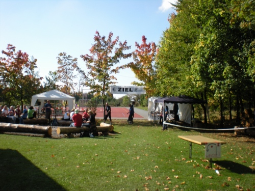 Im Gegensatz zum Waldhessenlauf muss ich aber die 10fache Entfernung von der JH bis zum Start zurücklegen: nämlich 20 Meter. Ich komme an meinem Auto vorbei und bemerke, daß ein Fuchs seine Abneigung gegen den fremden blauen Gegenstand offenbart und seine verdaute herbstliche Speisekarte auf der Kühlerhaube ausgebreitet hat.