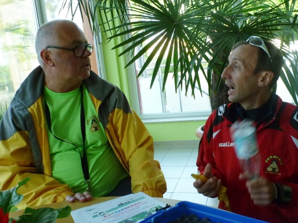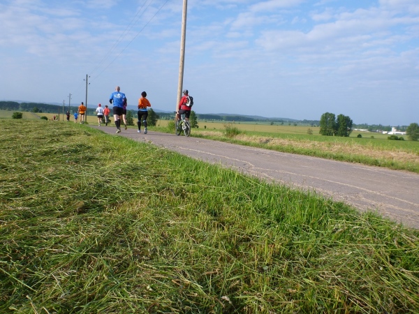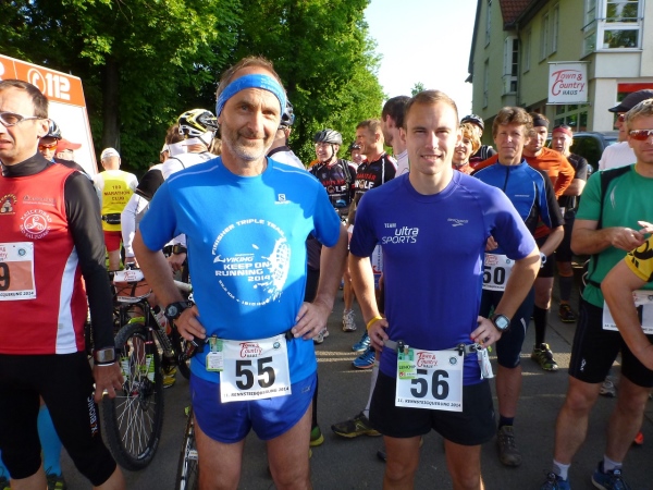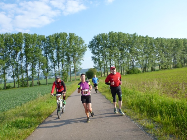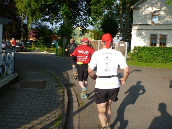 Dann höre ich nur ein Klatschen und die Sportler setzen sich ohne große Hektik in Bewegung. Die Radfahrer übernehmen auf der Hauptstraße sogleich die Führung. Wer von denen clever ist, wechselt sehr häufig. Ein Paar, das im Vorjahr Dritter wurde, spricht von einem Wechsel in der zweiten Hälfte bei jeden zweiten Kilometer. Wer guter Berg- oder Trailläufer ist, wird sicher bei ruppigen Streckenteilen zu Fuß unterwegs sein, während der Straßenläufer auf den Asphaltstrecken besser aufgehoben ist.