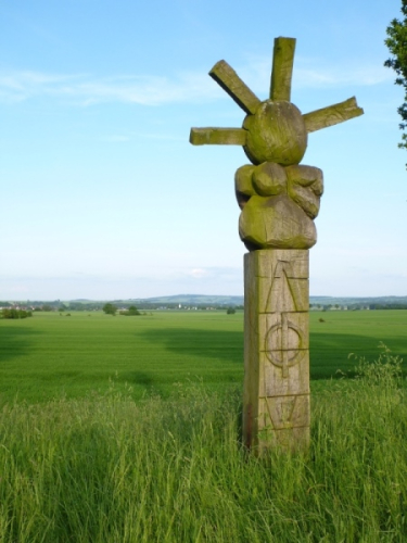 Ich quartiere mich im Ortsteil Hütscheroda ein, das etwa vier Kilometer von Behringen entfernt ist. „Du kannst gleich zum Einlaufen in der Frühe den Skulpturenweg am Waldrand laufen, ein Trail der besonderen Art“, so schlägt mir Werner Reinhold Wolf vor, der Chef des Pummpälzweg e.V, der als Veranstalter auftritt. Da der Start bereits um 07.30 Uhr vorgesehen ist, begnüge ich mich am Vorabend mit einem längeren Spaziergang in Hütscheroda. Ein idealer Ort für einen Urlaub, denn du kannst dich hier in Ferienhäusern oder im Hotel einquartieren.