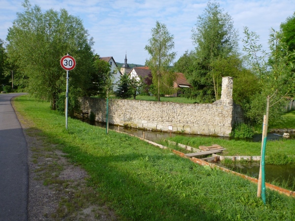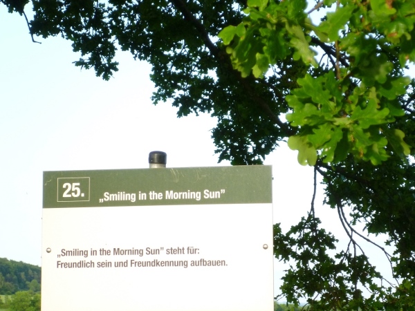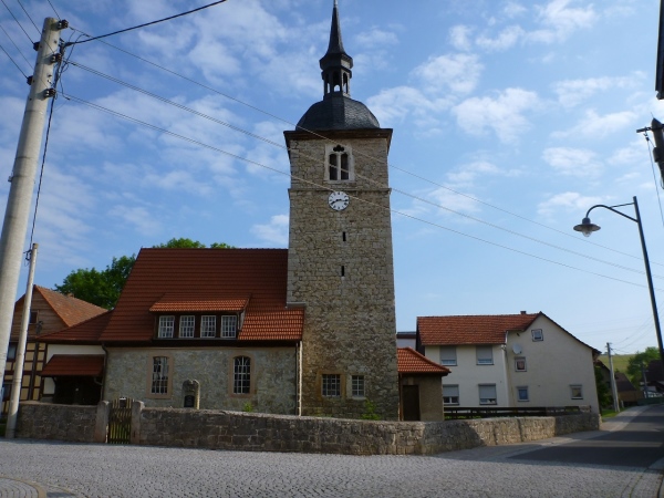 In Ettenhausen können wir wieder Wasser fassen, zudem liegen schon Bananenstücke für den Verzehr bereit. Am Unterstand markiert ein Schild einen Rettungspunkt für den Fall, dass jemand Hilfe benötigt. Bei einer Alarmierung würde unter Angabe der entsprechenden Nummer die Anfahrt der Blaulichtorganisationen schneller verlaufen. Nach einem guten Kilometer über Felder laufen wir nach Hastrungsfeld hinein, wo ein Anwohner nach unserm Weiterweg fragt. „Ach du grüne Neune“ höre ich ihn noch reden, als ich ihm das Ziel in Bad Salzungen mitteile.