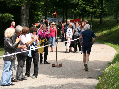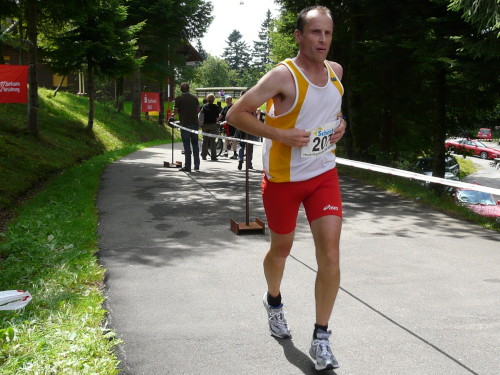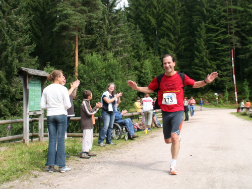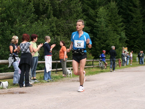 Wenn man die Birkenauhütte erreicht, ist es nicht mehr weit. Allerdings steht den Läufern jetzt der steilste Steckenabschnitt bevor. Erst langsam, dann aber ziemlich beschwerlich steigt die Verkehrsstraße Richtung Hundseck an. Beim alten Kurhaus Hundseck geht es einen steilen Wiesenweg hoch - dann sind es nur noch 200 Meter ins Ziel. Jeder wird namentlich begrüßt und von den Zuschauern gibt es freundlichen Applaus.