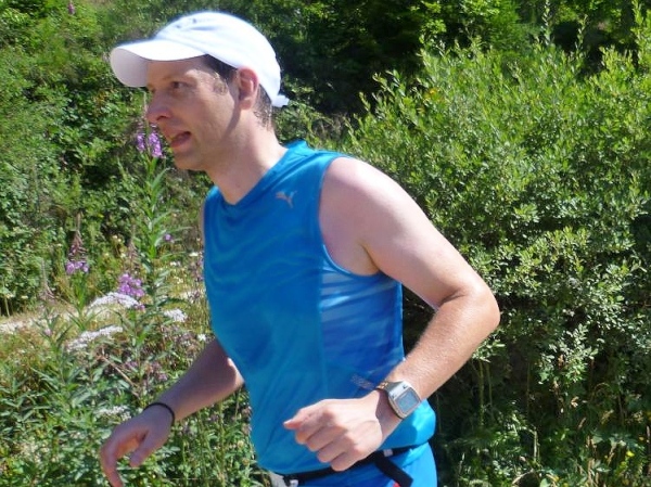 Mir begegnet ein Jogger, der mich anfeuert und im Vorbeilaufen die nächste VP ankündigt. Nach einer Weile kommt er zurück. Er motiviert mich zum Mitlaufen. Nach einem kurzen Stück muss ich wieder gehen. Er verspricht mir, dass die VP tatsächlich gleich kommt und läuft alleine weiter.