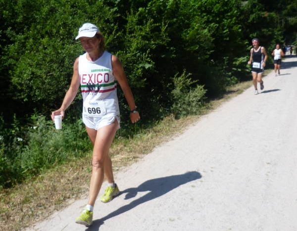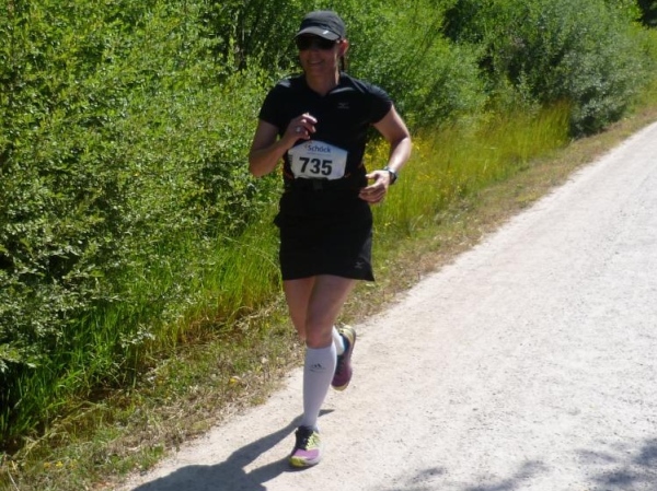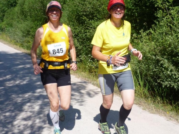 Die Kilometer werden weniger. Gabi kommt von hinten. Uns verbindet eine gemeinsame Erfahrung beim Freiburg-Marathon vor zwei Jahren. Damals sind wir ebenfalls durch die Hitze eingegangen. Heute ist sie besser drauf. Sie zieht mich bis zum nächsten Kilometerschild. Dann kann ich nicht mehr mithalten. Locker läuft sie davon.