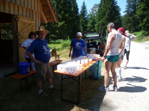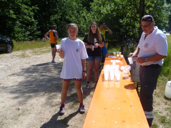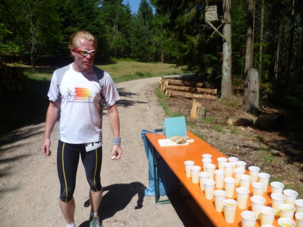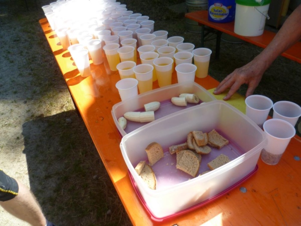 Ich brauche etwas Zeit, um diese Info zu verdauen. Inzwischen versorgen mich 3 Kinder mit Iso, Tee und Wasser. Als ich wieder halbwegs denken kann, fällt mir ein, dass das ja die VP ist, die seit Jahren von immer den gleichen zwei Familien betreut wird. Bevor wir jedoch ein Foto machen können, kümmern sich alle um die eben hinter mir eintreffende Läuferin. Erst kommt die Arbeit!