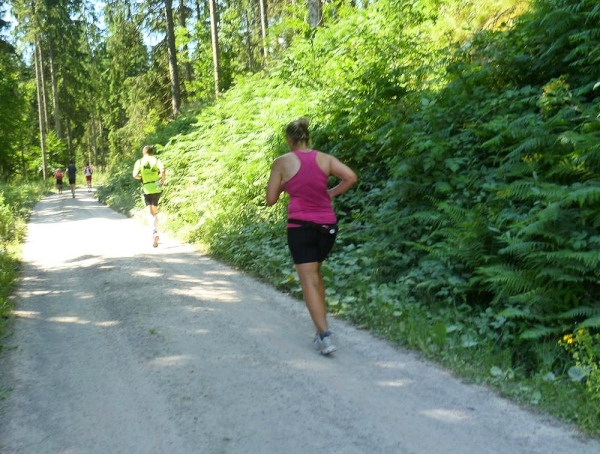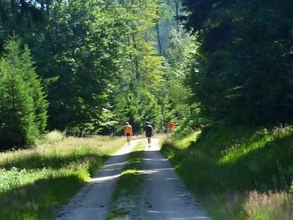 Meine einzigen Motivatoren sind die Kilometerschilder. Die ebene Strecke bietet immer das gleiche Bild: Bäume - mal mehr, mal weniger dicht. Mal gibt es eine Links- und mal eine Rechtskurve. Ab und zu kommt ein Läufer von hinten, grüßt kurz, stöhnt über die Hitze und läuft weiter.