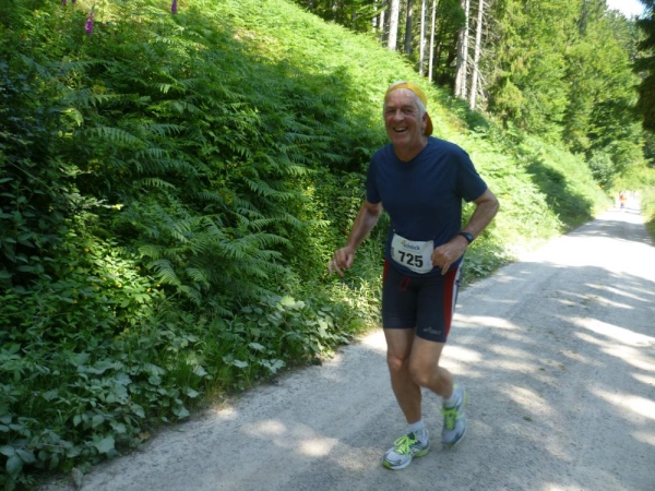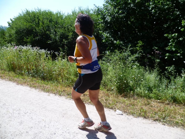 Ich tu mich nochmal am VP gütlich, denn jetzt geht es bergauf. Die Steigung war mir schlimmer in Erinnerung. Eigentlich ist sie gar nicht schlimm. Aber ich bin so platt, dass ich mich aufs Gehen verlege. Immer wieder kommen Läufer von hinten und überholen mich.