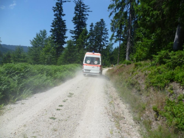 Beim Weiterlaufen verarbeite ich langsam die neue Lage. Wenn hier km 40 ist, dann sind es noch 2 km bis ins Ziel. Wenn ich den nächsten Kilometer einigermaßen durchlaufen könnte, würde ich, trotz des letzten langen, steilen Anstiegs, noch nach weniger als 5 Stunden ins Ziel kommen. Plötzlich läuft es wieder. Selbst der Krankenwagen, der mich im Vorbeifahren komplett in eine Staubwolke hüllt, bremst mich nur kurz.