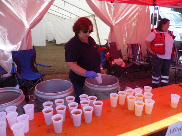 Inzwischen haben es sich die Läufer und Begleiter im Zelt gemütlich gemacht. Draußen ist es immer noch zu heiß. Die zivilen Preise der angebotenen Speisen und Getränke laden zum Verweilen ein und bei der Siegerehrung strahlen die Sieger mit der Sonne um die Wette.