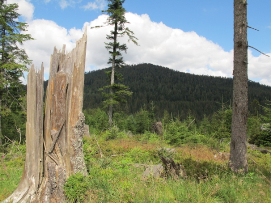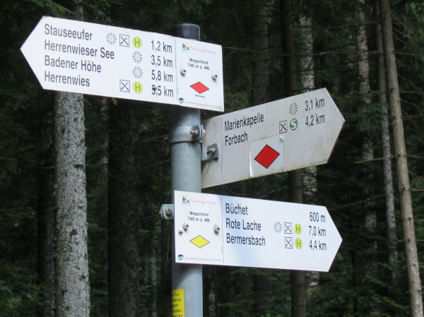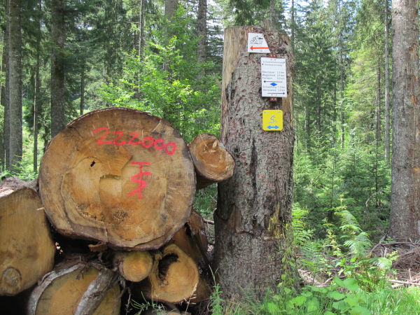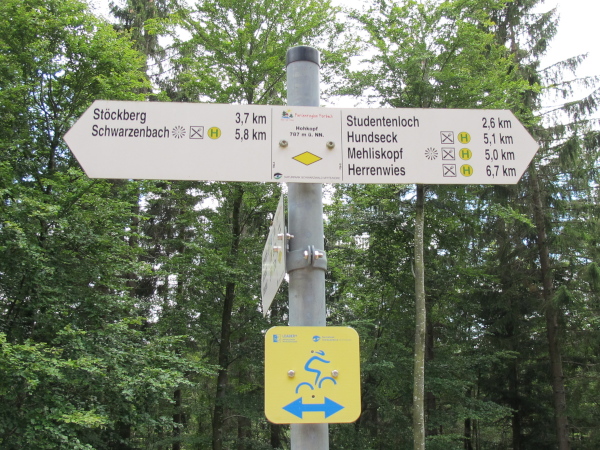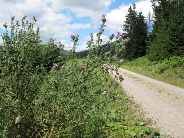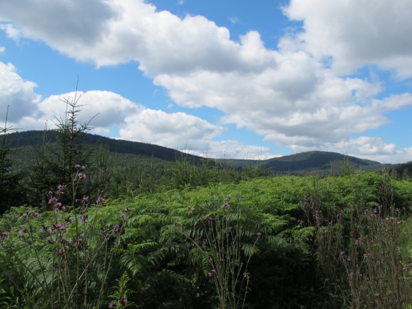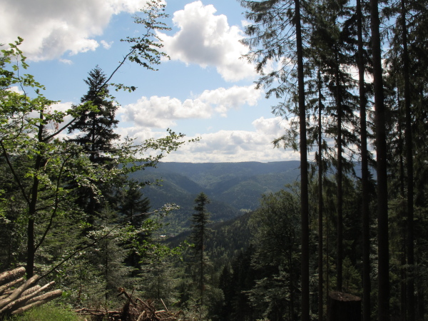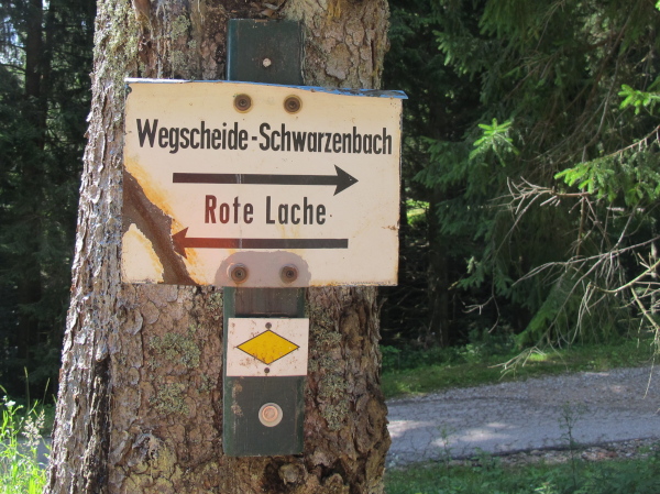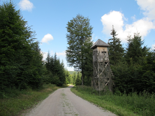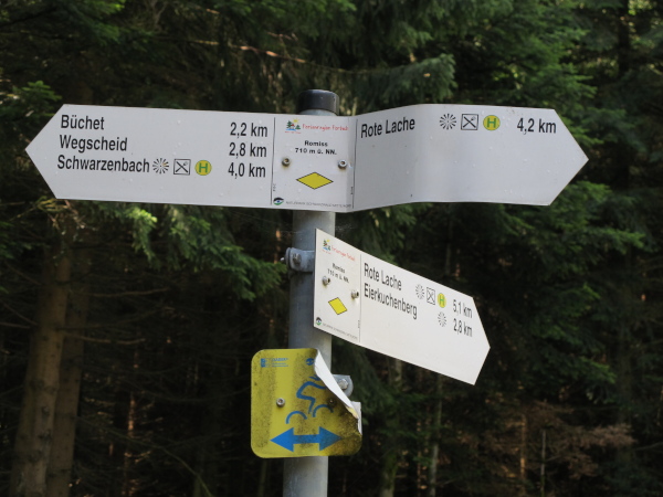 Die Bernsteinhütte (738 m, km 8) ist ein kleines Schutzhaus, der Scherrhof (676 m km 11,5) ein sehr beliebtes Ausflugslokal, das aus einer 1830 erbauten Jagdhütte entstanden ist. Frische Heidelbeeren mit Vanille-Eis gibt es für 5,90 Euro. Ich erinnere mich, wie ich als Schuljunge in den Ferien mir mit Heidelbeerpflücken mein erstes Fahrrad verdient habe. 50 Pfennige habe ich für das Pfund bekommen. Wenn es gut lief, habe ich in der Stunde zwei Pfund geschafft.