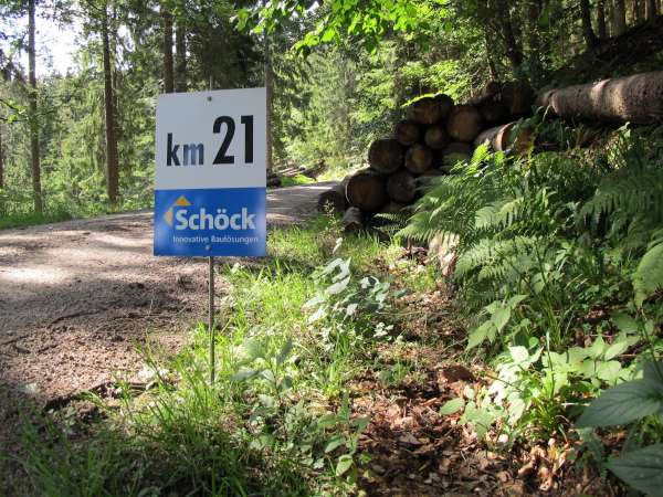 Heute läuft es sehr gut, ich schaffe in der Stunde über 9 (!) … Kilometer. Ehrlich, ich weiß gar nicht, was los ist. So schnell war ich dieses Jahr noch nicht unterwegs. Na ja, es sind kaum Leute auf der Strecke und Bilder, nur mit Bäumen drauf, werden Euch nicht interessieren. Deshalb hält mich die Fotoarbeit nicht so sehr wie sonst auf.