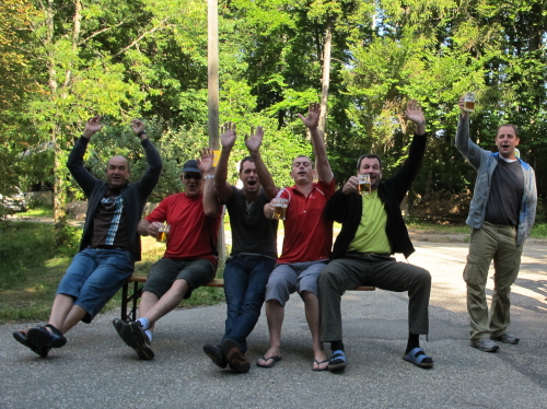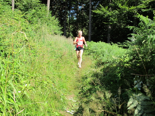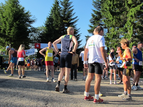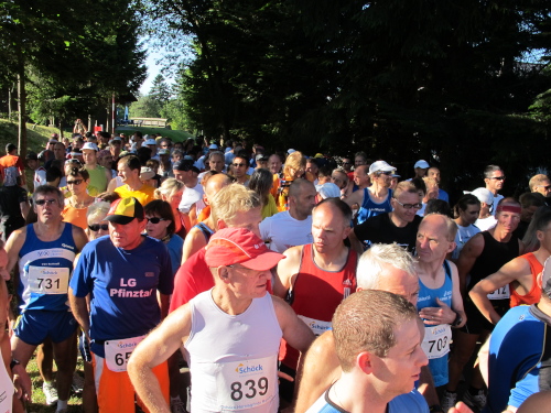 Nach einem Gewitterregen am Samstag ist der Sonntagmorgen angenehm kühl, manchen fröstelt sogar hier auf 900 m Höhe. Und viele, so fürchte ich, sind gar nicht erst angereist, aus Angst vor der Hitze. Tatsächlich hatten wir hier am Oberrhein vergangene Woche wie fast überall in Deutschland rekordverdächtige Höchstwerte. Aber wie ich eingangs schon erwähnt habe, ist es auf der Höhe immer 5 bis 6 Grad „gemäßigter“. Außerdem bietet die Strecke ziemlich viele schattige Passagen. Mit gutem Gewissen kann man raten, hierher der Hitze zu entfliehen. Trotz heftigem Sonnenschein werden heute die 20 Grad nicht überschritten. Angesichts der Jahreszeit ideal und schade für jeden, der gekniffen hat.