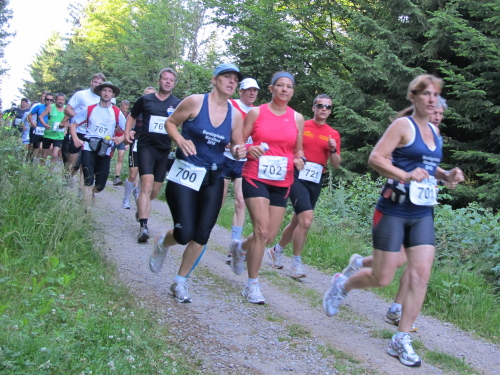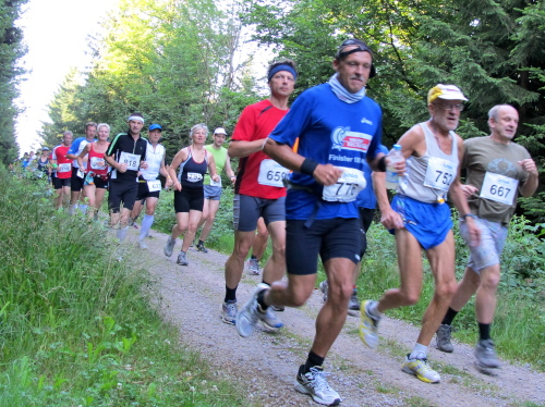 Wer auf Sieg oder gute Zeiten aus ist, hat sich ganz vorne eingereiht. Es wird nämlich gleich nach dem Start etwas eng und der Vordermann nimmt Einfluss auf das Tempo. Freien Lauf hat man dann wieder beim Kurhaus Sand, als es kurz auf die Schwarzwaldhochstraße geht, auf der sicherheitshalber der Verkehr angehalten wird.