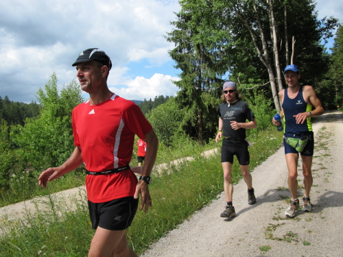 Und wenn ich schon am Mut machen bin, hier noch eine kleine Geschichte. Ich laufe schon die ganze Zeit mit Matthias Becker, der 2008 den Deutschlandlauf (ca. 1200 km in 17 Tagen) gefinisht hat. Gemeinhin denkt man ja, solche Läufer kommen von einem anderen Planeten oder haben nie in ihrem Leben etwas Anderes gemacht. Das ist eine einfache Erklärung, mit der man es sich wieder bequem machen kann.
