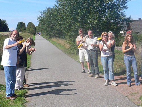 Viele 100 im Ziel, unterwegs in den Ortschaften immer wieder etliche Gruppen, die die LäuferInnen feiern.