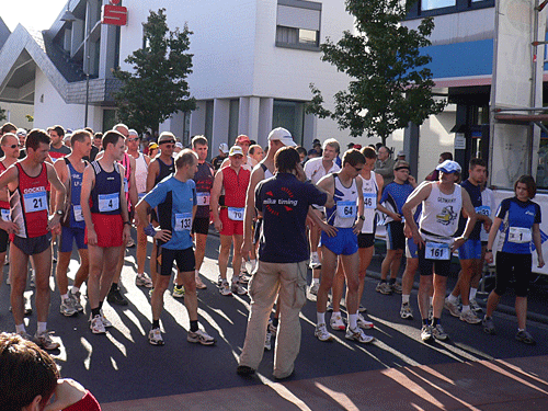 Hier auf dem Schloßplatz herrscht Kirmesstimmung. Zuschauer und Aktive vermischen sich. Es ist stellenweise ein dichtes Gedränge und eine Super-Stimmung. Die Verpflegung ist bestens. Es gibt den ULTA-Refresher, Wasser mit und ohne Kohlensäure, Apfelschorle und Bananen für jeden, der sie heute noch leiden kann.