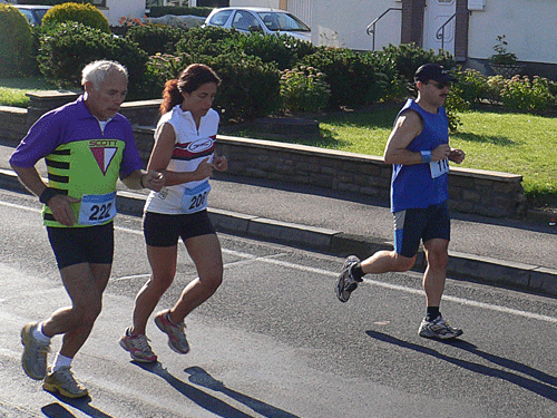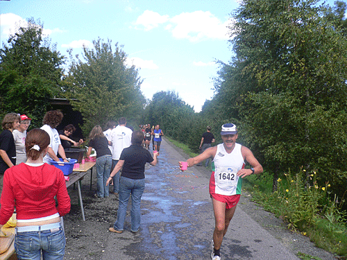 Nach Bell (km 29) steigt die Strecke nochmals an, dann geht es nur noch abwärts. Ein paar Kilometer weiter kommen dann die Halbmarathonis angedüst. Sie haben nach dem Start ein Runde gedreht und kommen jetzt auf den Radweg. Mich nervt das heute. Ich bin zwar ziemlich kaputt, aber noch ganz gut unterwegs. Trotzdem werde ich dauernd überholt. Einige hängen so die Sau raus, dass ich meine, ich müsste zur Seite springen und ihnen den ganzen Weg überlassen. Das geht eine ganze Weile so und ist wenig motivierend.