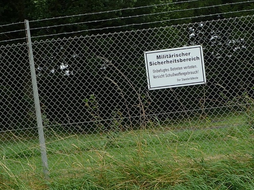 Hinter der ehemaligen Haltestelle der Hunsrückbahn in Bell (km 30) liegt das Hügelgräberfeld “Alter Markt” mit 22 Grabhügeln und das Feld “Fuchshohl” mit 41 Bestattungen. Berühmt ist das reiche Wagengrab eines keltischen Fürsten (ca 500 v. Chr.). Einige Hügelgräber liegen in einem Sperrgebiet der Bundeswehr (links) und warten auf spätere Ausgräber. Andere Hügelgräber wurden beim Bau der Raketenbasis Pydna eingeebnet. 96 Kreuze, eines für jede hier stationierte Atomrakete, erinnert an die Demonstrationen gegen den NATO-Doppelbeschluss.