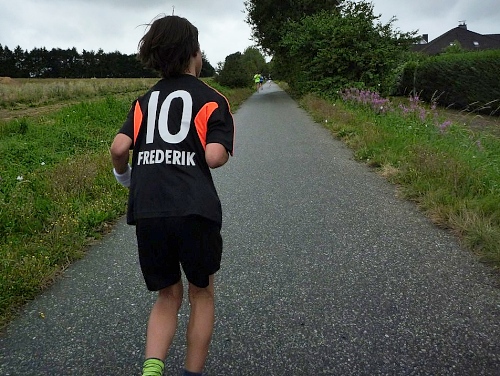 Alterkütz (km 37): “Geeeeeels, Geeeeels! Ist gut für die Muskeln!” Die Kinder der Verpflegungsstation sind hochmotiviert, ich höre Diskussionen, wie man am besten Nahrung und Verpflegung anbietet. Als Kind habe ich ja auch gelernt, dass man Pferde mit der flachen Hand füttert, aber wie macht man das mit Bananen? Auf dem Tisch steht eine Flasche meiner favorisierten Isosorte. Spitzenservice hier!