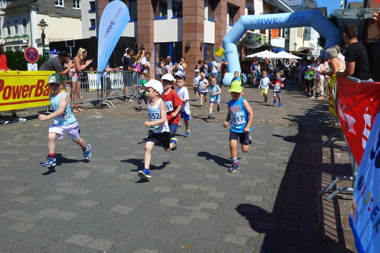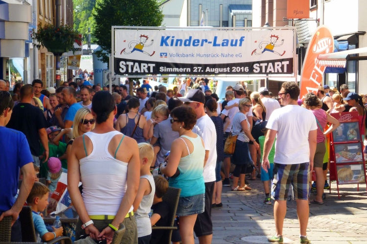 Aus der klimatisierten Bäckerei im Startbereich schauen wir am Samstag bei Kaffee und Kuchen den Kinder- und Schülerläufen zu. Die Größeren legen trotz der hohen Temperaturen wieder einmal bemerkenswert schnelle Zeiten hin. Danach geht es ins Naturfreibad zum Abkühlen. Abends gibt es noch einen Schinderhannes-Braten vom Schwein und dann ab ins Bett. Wir haben im Wirtshaus „Domäne“ am Simmersee ein schönes Hotel gefunden. Kostenlos übernachten könnte man auch in diesem Jahr wieder in der Turnhalle der Rottmann-Schule.