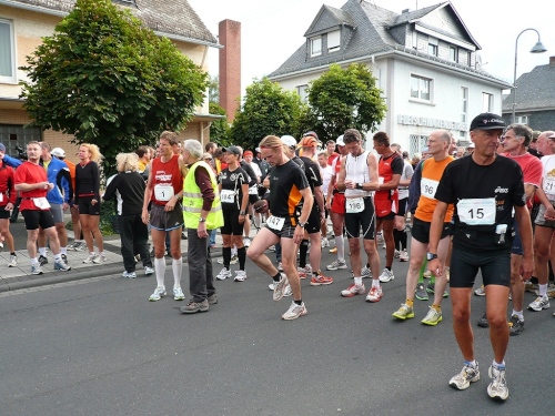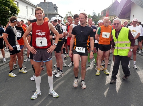 Zwischen den rund 200 Marathonläufern hier am Start befindet sich auch die Nr. 1 Marco Diehl, der Seriensieger. Man könnte sagen "alle Jahre wieder“ oder “Er kam, sah und siegte“. Die letzten 5 Läufe hat er bereits gewonnen und wird auch heute den Sieg ein(fahren)laufen. Die Teilnehmer sind alle relativ entspannt und nach dem Startschuss setzt sich nur das Feld vorne schnell ab. Also ein problemloser Start. Warum auch nicht, es gibt ja die Nettozeit-Messung mit dem