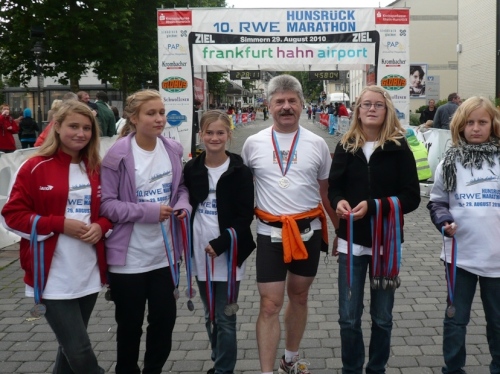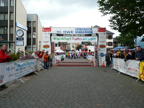 Hinter dem Ziel bekommt man eine schöne Medaille, noch ein paar Fotos machen und dann ab zur Verpflegung mit Läuferbier und vielen anderen Stärkungsmitteln. Den Kleiderbeutel gibt es in der Hunsrückhalle und geduscht wird nebenan im Hallenbad. Wer nicht bei den Massagen anstehen will, kann auch einige Bahnen im Schwimmbad zurücklegen und seine Muskeln auf diese Weise lockern.