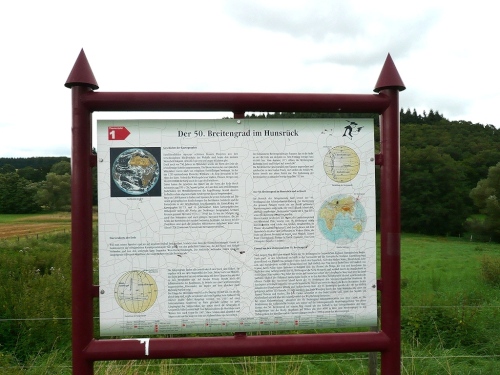Kurz hinter Neuerkirch kommt Külz, in dem auch frühgeschichtliche und römerzeitliche Bodenfunde gemacht wurden. Hinter dem Ort quert der 50. Breitengrad den Radweg, worauf ein ein Stein besonders hinweist. Es geht vorbei an Keidelheim. Hier gibt es Technomusik - recht laut. Ich frage den Disc-Jockey, ob er die „Mini Nature One“ veranstaltet. Es geht zum tiefsten Punkt unserer Laufstrecke, dem Schmiedeltunnel. Kurz vorm Tunnel erreichen wir das KM-Schild 41.