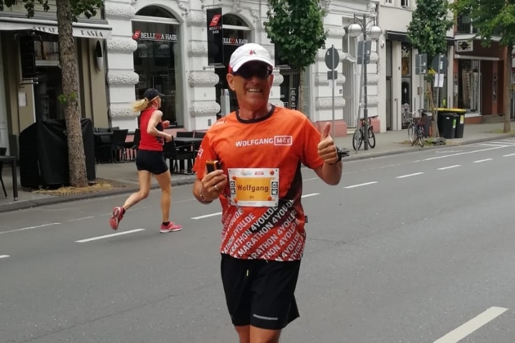 Kurz hinter mir stürmt Johannes herein, um sofort krampfgeschüttelt, aber sichtbar glücklich, im Ziel zu liegen. Sehr wahrscheinlich liegt das neben seiner Leistung auch an dem zahlreich erschienenen Mädchen-Fanclub, der ihm eine Sektdusche gönnt. Einige Zieleinläufe beobachte ich noch, dann trolle ich mich mit Jürgen, Henry und Rob zur Zielverpflegung, wo wir in aller Ruhe noch jede Menge Läuferlatein austauschen. Selbstverständlich gerstensaftbegleitet, und der ist sogar kühl! Resümierend ist festzustellen, daß ich endlich mal wieder einen Stadtmarathon, so mit allem, was dazugehört, genießen konnte. Das mit dem Shirt wird sich bestimmt noch klären lassen und wo man gut parkt, wißt Ihr jetzt auch. Bei dem reichhaltigen Angebot drängt sich eine Rückkehr 2023 mit meinem Lauftreff auf.