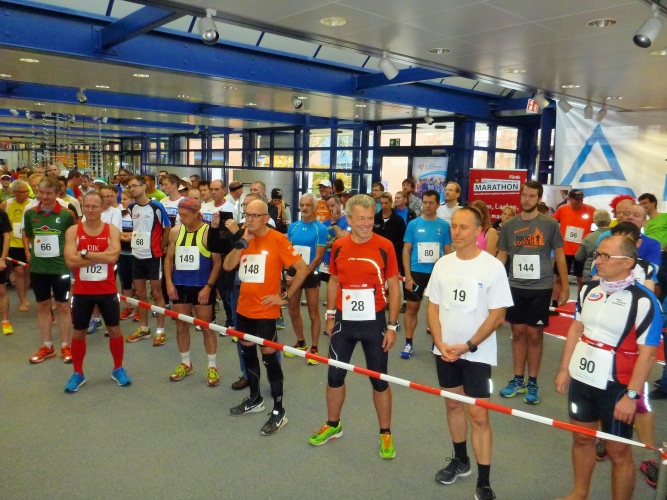 Der Indoormarathon hat viele Stammläufer und ist immer ausgebucht. Petra Schuster, die emsige und tüchtige Orga-Frau, benachrichtigt die interessierten Läufer, damit die sich gleich bei der Öffnung der Online-Registrierung anmelden können. Später werde ich Petra auch auf der Strecke sehen. Ihr wurmt es ein wenig, dass 20 Startnummern nicht abgeholt werden. Weil die Läufer nicht abgesagt haben, gehen andere auf der Warteliste leider leer aus. Sportlich ist das nicht.