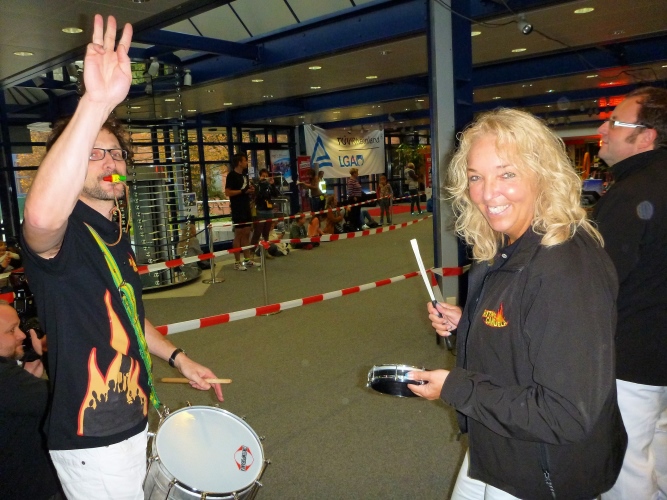 Viele Zuschauer im Foyer, sachkundige Moderation, Sambagruppe